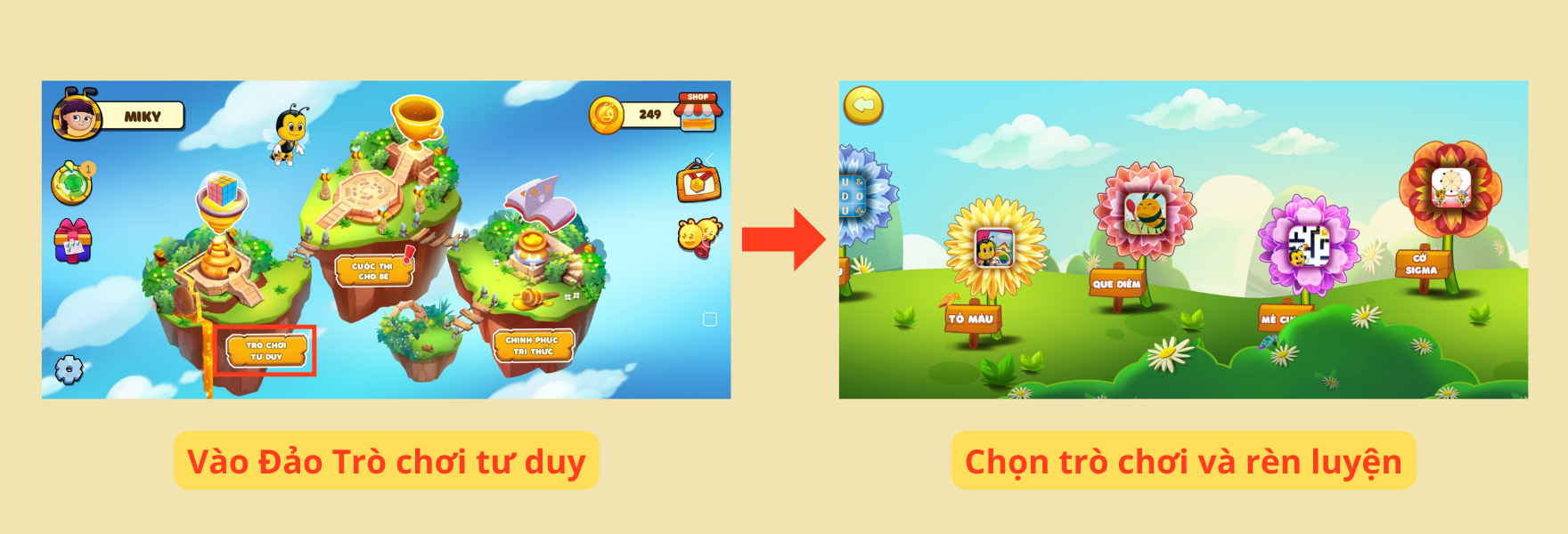 Tại màn hình chính, bạn sẽ thấy Đảo Trò chơi tư duy. Bên trong đó có hơn 10+ trò chơi rèn luyện dành cho bé.